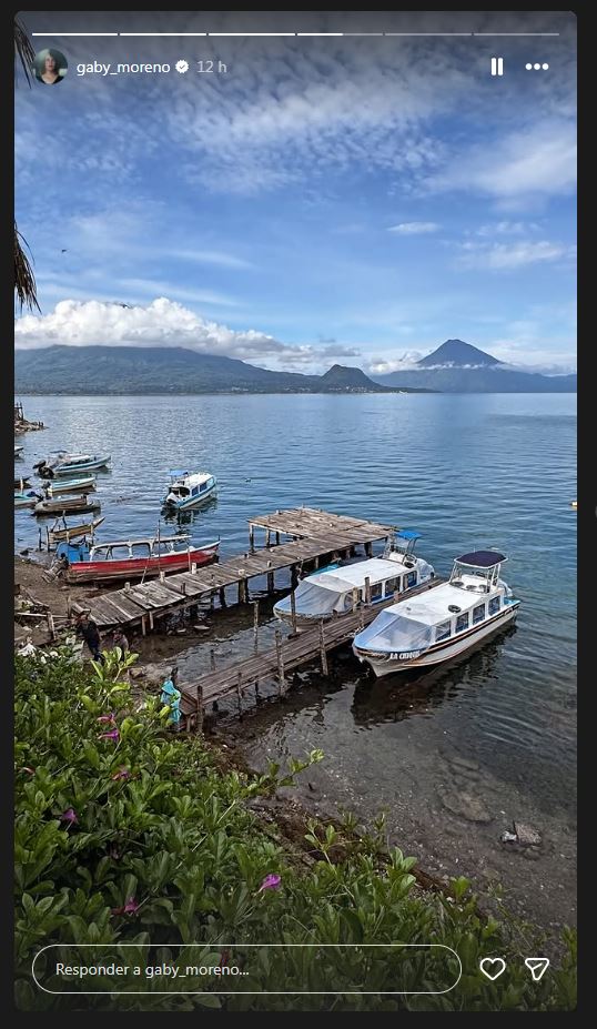 A través de sus historias de Instagram, la artista mostró cómo recorría el lago en lancha a las 5:28 horas, capturando postales que dejaban ver la tranquilidad del agua y los volcanes que rodean el paisaje. Posteriormente compartió imágenes de su viaje en tierra guatemalteca.