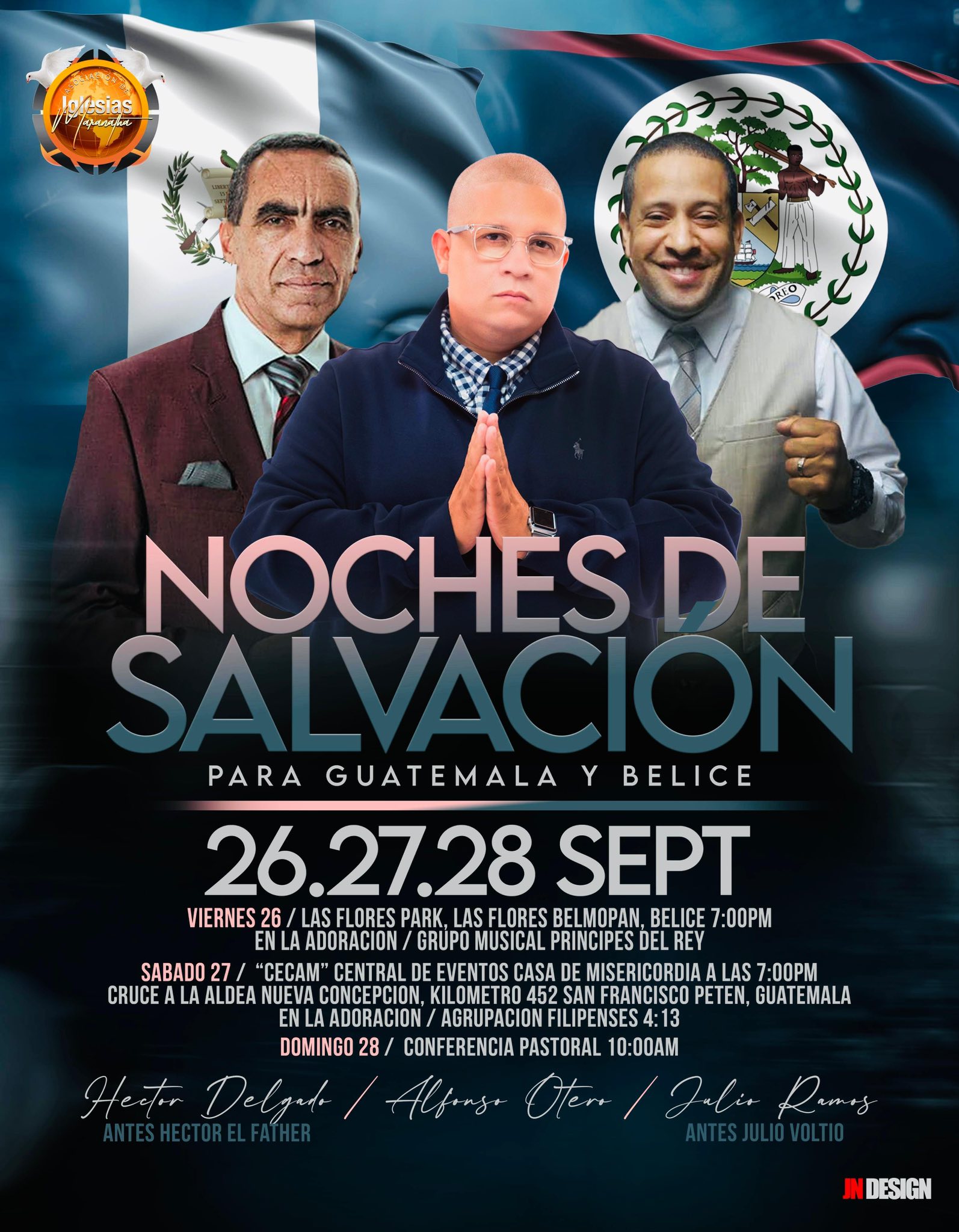 El evento "Noches de Salvación" se llevará a cabo los días 26, 27 y 28 de septiembre en Belice y Guatemala. El sábado 27, Delgado y Ramos estarán presentes en el Central de Eventos Casa de Misericordia (CECAM), ubicado en San Francisco, Petén, donde ofrecerán un mensaje evangelístico acompañado de música cristiana con la agrupación Filipenses 4:13.