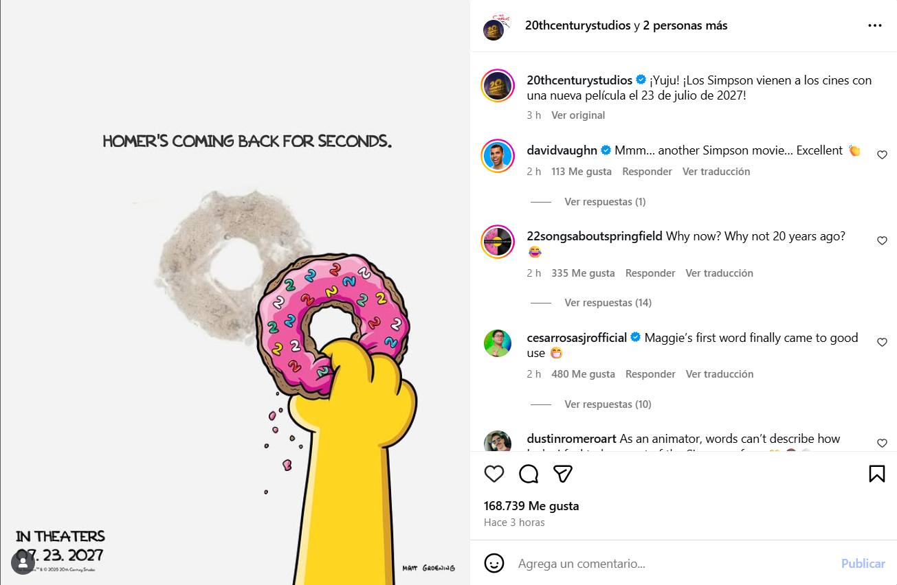 "Yuju! ¡Los Simpson vienen a los cines con una nueva película el 23 de julio de 2027!", escribieron en las redes sociales.