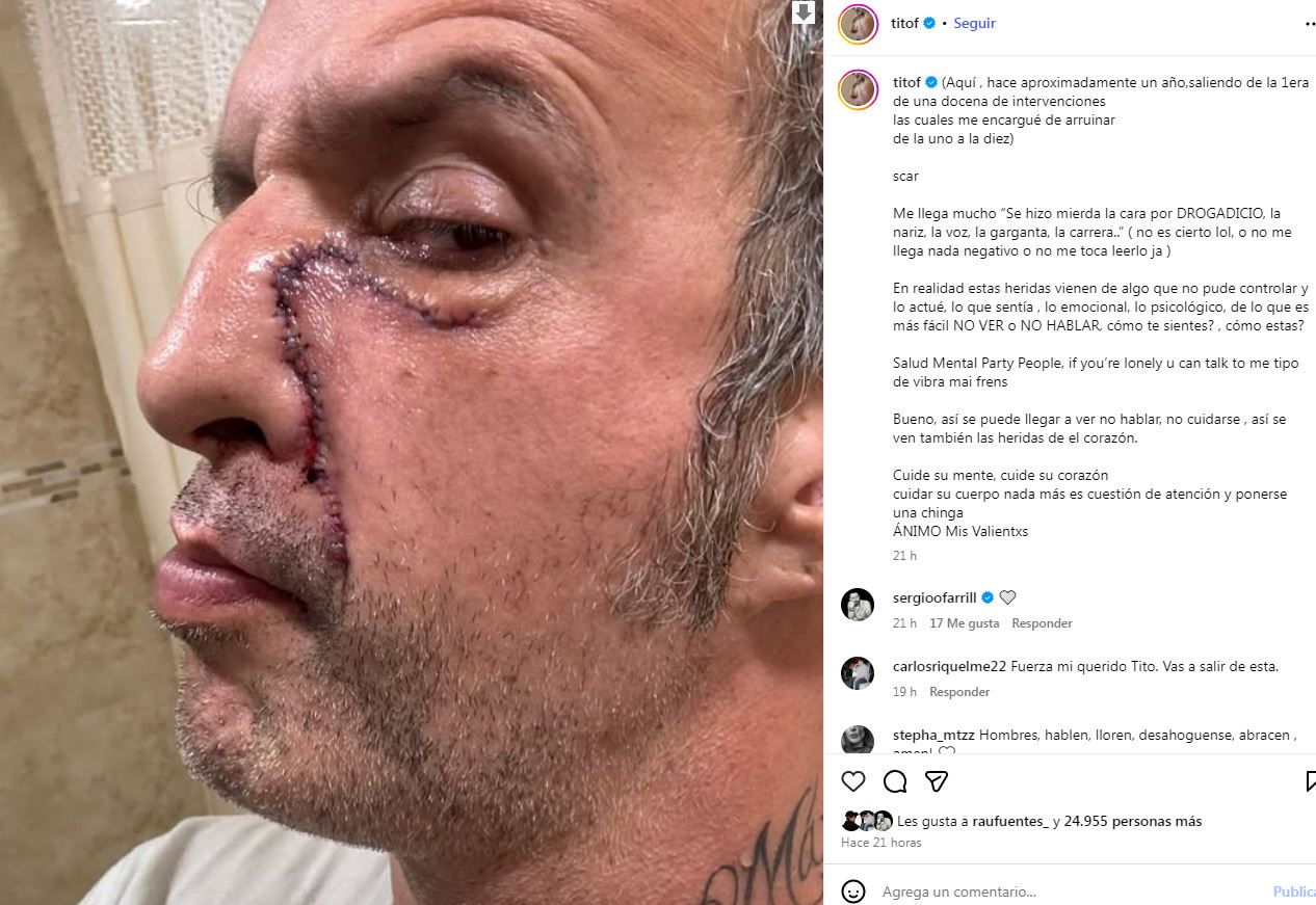 Más allá de hablar de sus heridas físicas, Tito Fuentes aprovechó para hacer un llamado a cuidar la salud mental, invitando a sus seguidores a hablar de lo que sienten y a no guardar el dolor emocional: