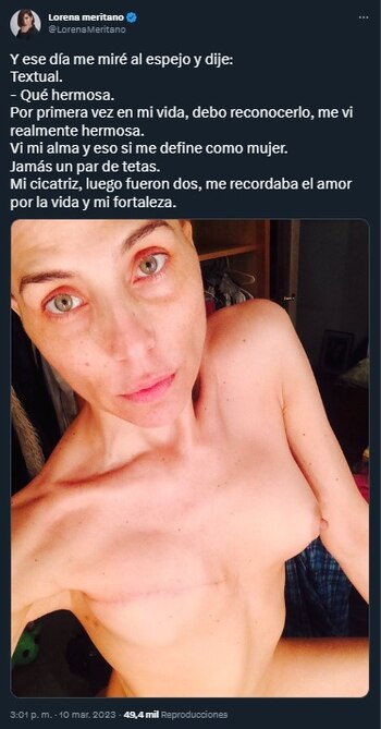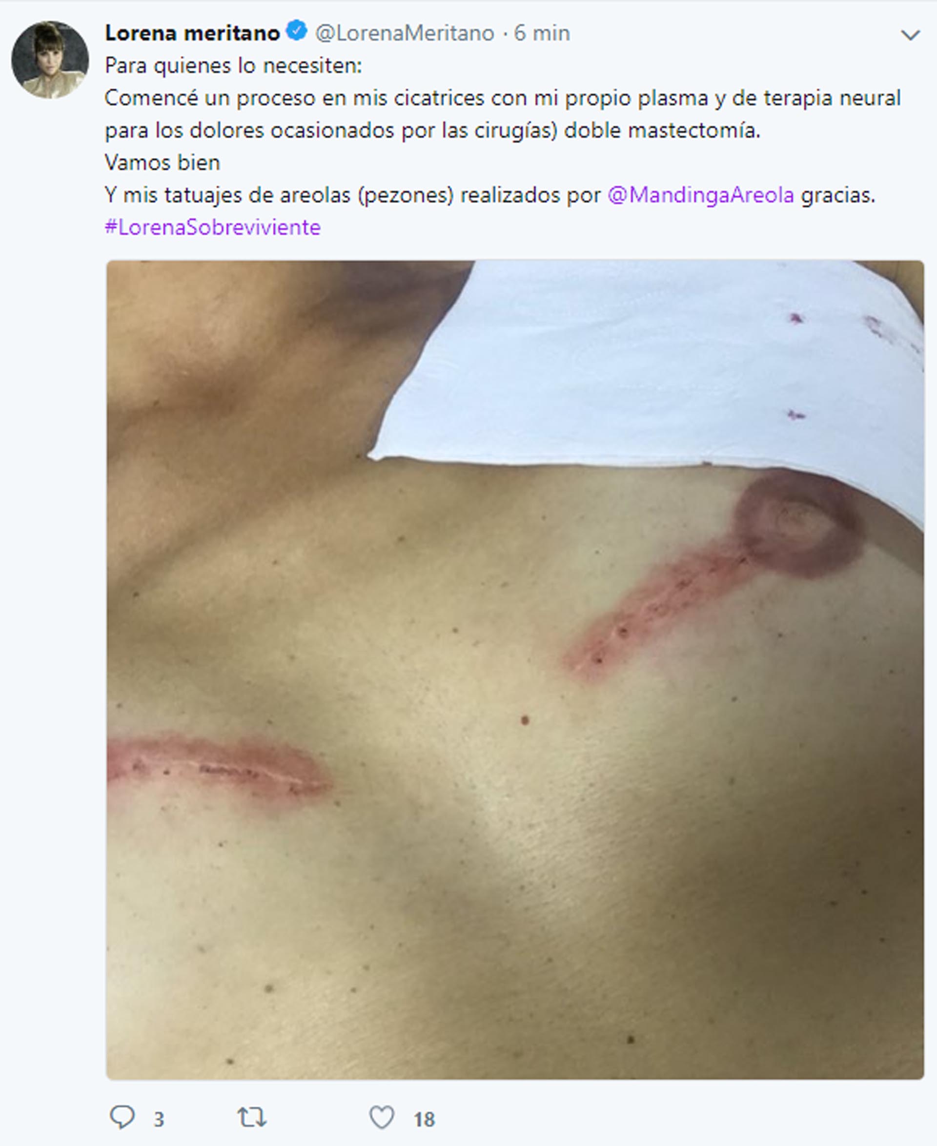 Lorena Meritano sorprendió a sus seguidores luego de compartir una foto donde se ve como quedaron sus senos luego de tatuarse las areolas.