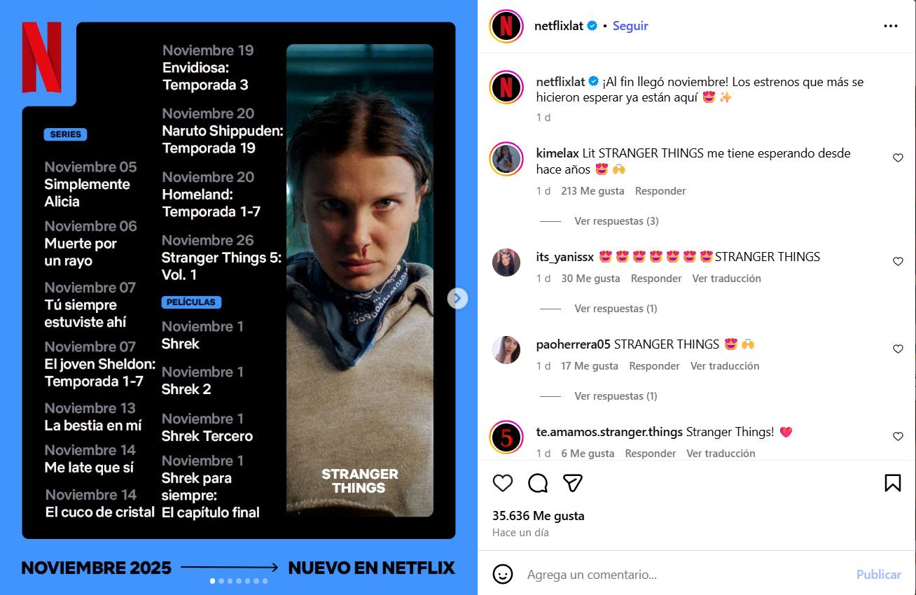 El 26 de noviembre será el inicio de la esperada quinta y última temporada de "Stranger Things" en Netflix, que mantendrá el suspense del final hasta el 31 de diciembre, ya que la plataforma ha decidido dividir en tres partes su emisión.