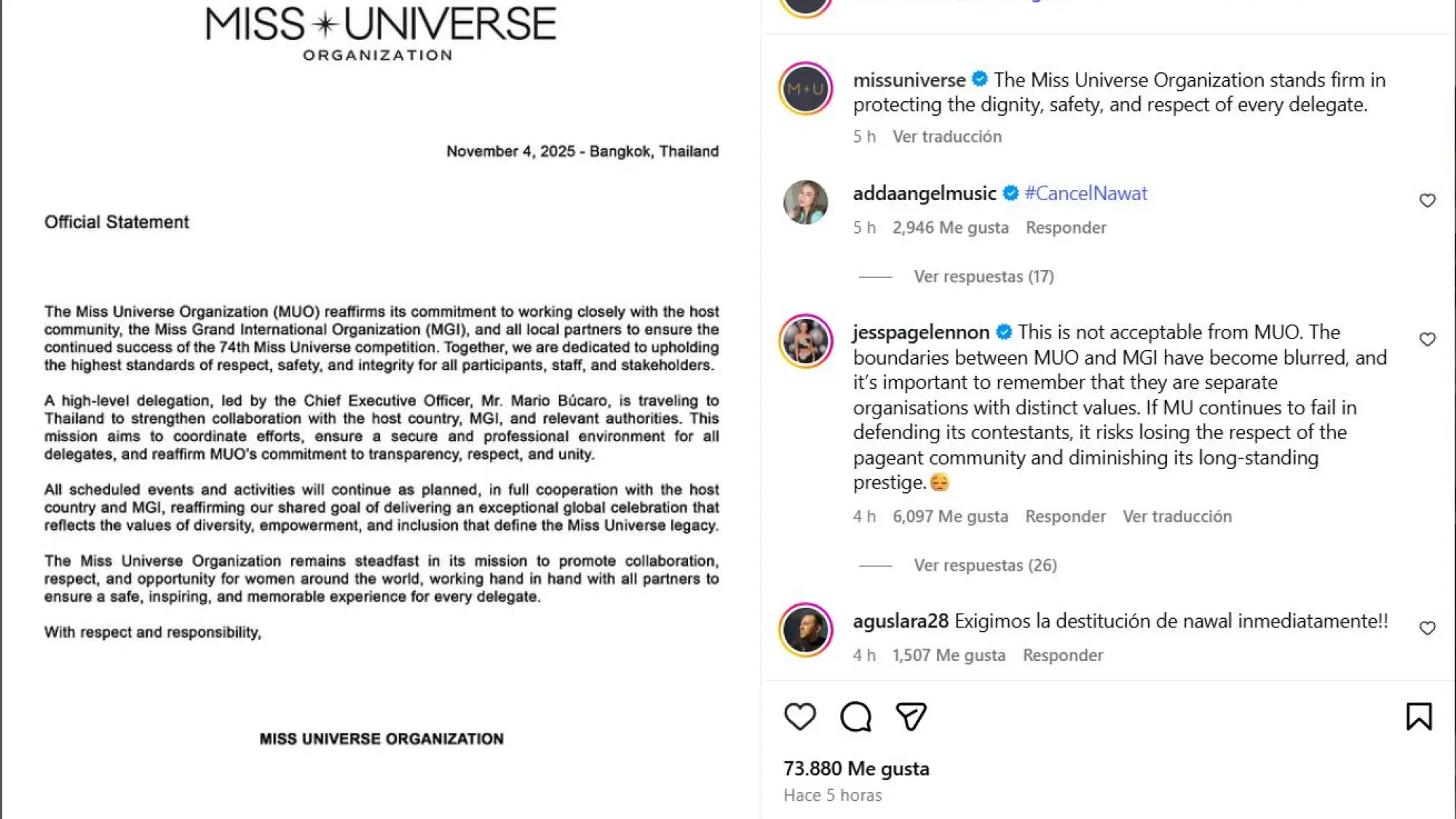 El certamen de Miss Universo se encuentra en medio de la polémica tras el escándalo que protagonizó Fátima Bosch, Miss México y director ejecutivo Nawat Itsaragrisil.