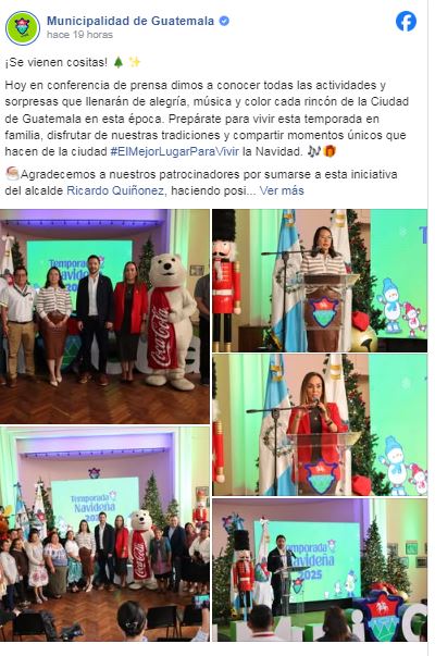 La Municipalidad de Guatemala dio a conocer el amplio programa de actividades de la Temporada Navideña 2025, que llenará de música, luz y tradición cada rincón de la capital. Bajo el lema "El mejor lugar para vivir la Navidad", la comuna invita a vecinos y visitantes a disfrutar de una agenda cargada de emoción, cultura y alegría para grandes y chicos.