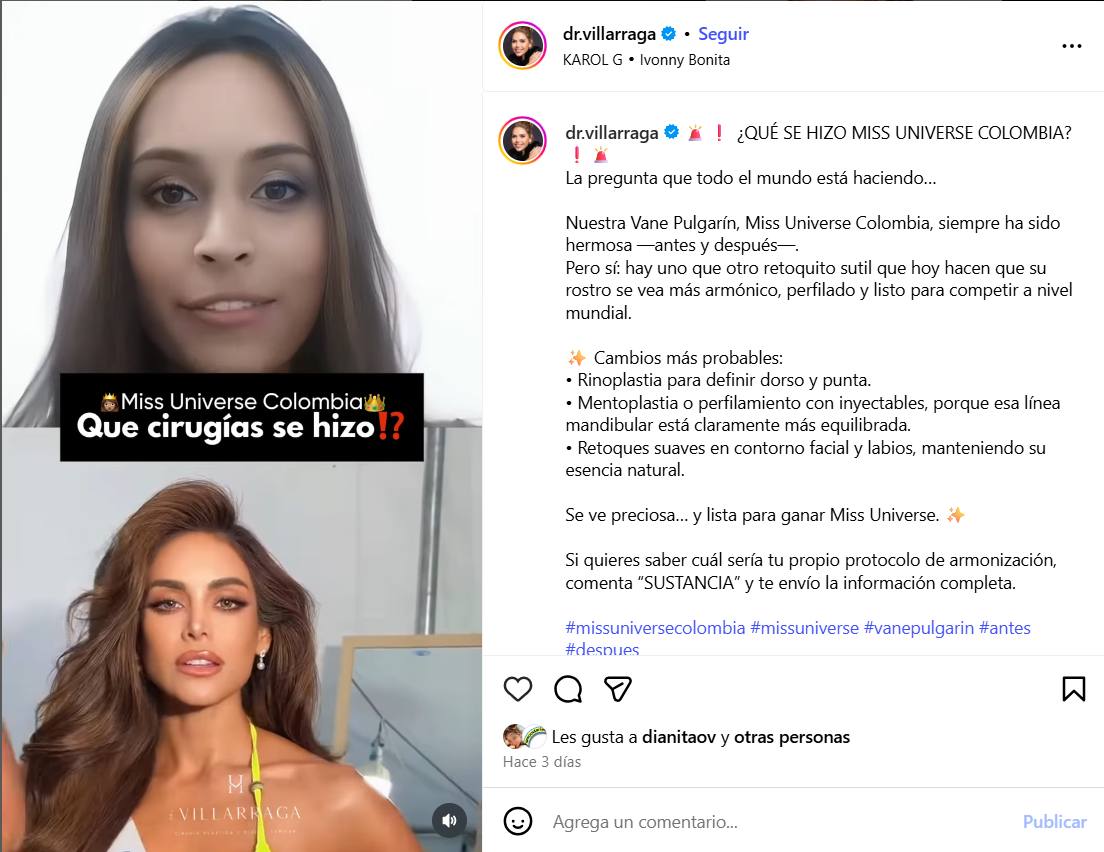 Vanessa Pulgarín ha sido objeto de atención por la difusión de imágenes de su pasado, en las que se comparan sus rasgos actuales con los que tenía antes de someterse a procedimientos estéticos.