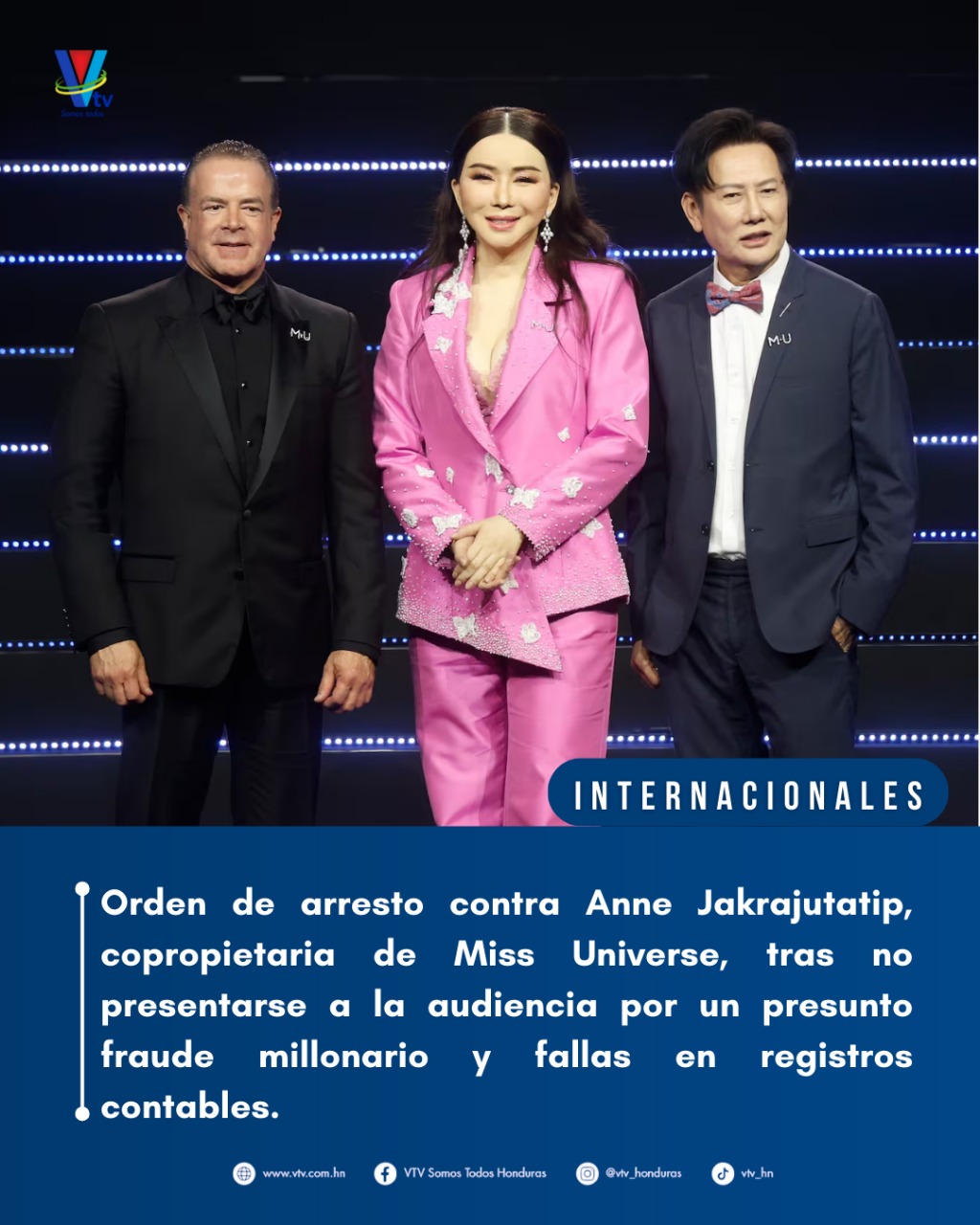 Un tribunal de Tailandia ha emitido una orden de arresto contra Jakkaphong 'Anne' Jakrajutatip, copropietaria de Miss Universo, en relación a un supuesto caso de fraude por valor cercano a un millón de euros.