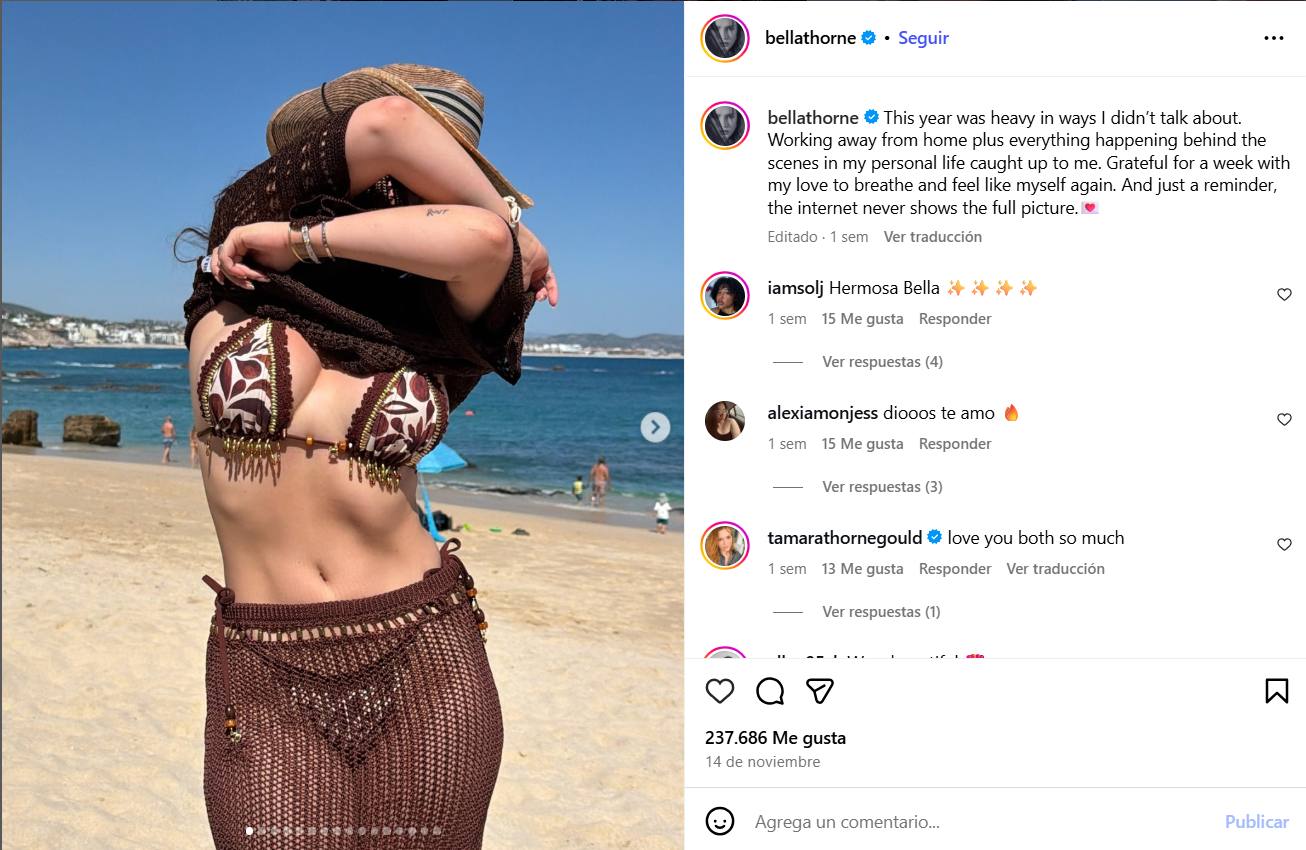 "Agradecida por una semana con mi amor para respirar y sentirme yo misma de nuevo. Y solo un recordatorio: internet nunca muestra la imagen completa", añadió.