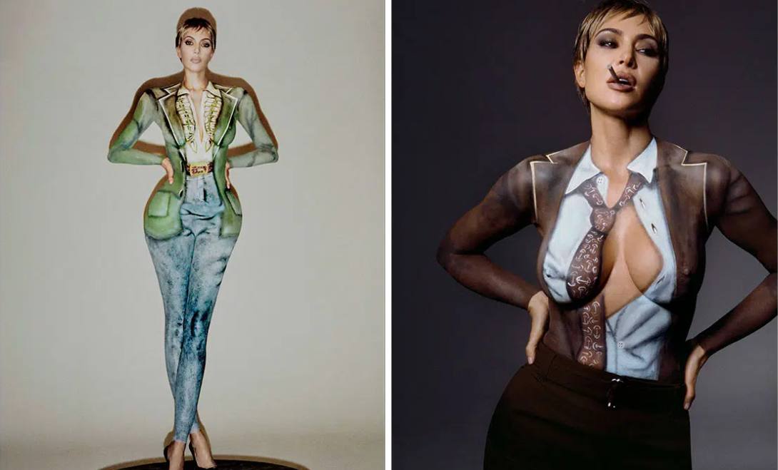 Y es que las "prendas" de pintura que luce Kim Kardashian en su posado son diseños que la firma italiana ha creado especialmente para ella junto a Athena Paginton. Esta artista ha sido la encargada de pintar a mano sobre el cuerpo de la influencer cada uno de los looks con los que posa en la revista.