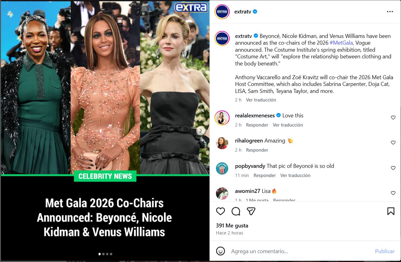 El vibrante evento anual de alta costura está programado para el lunes 4 de mayo de 2026. La exposición Costume Art estará abierta al público del 10 de mayo de 2026 al 10 de enero de 2027. El dress code de la velada se anunciará próximamente.