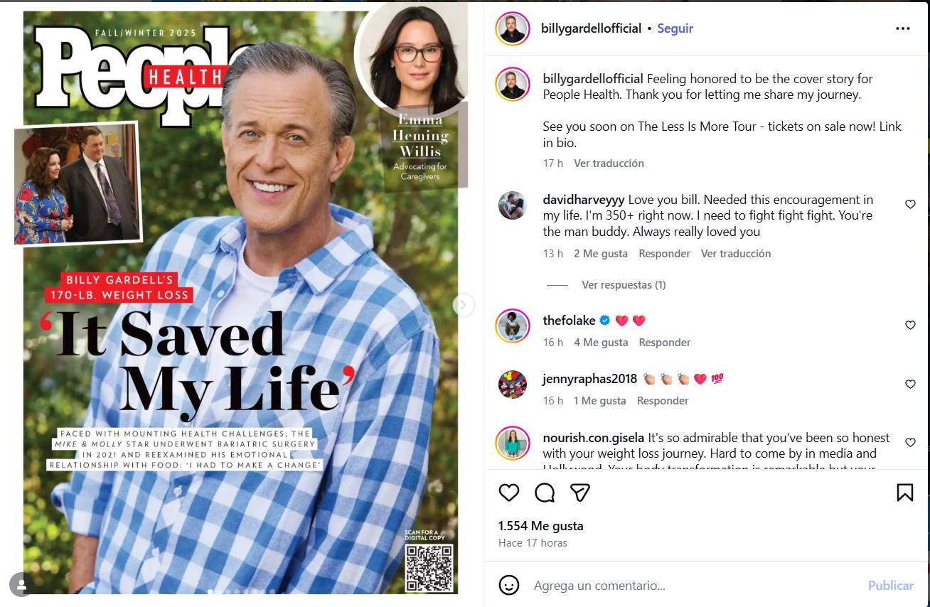 Billy Gardell destaca que su esposa Patty y su hijo Will, de 22 años, fueron un respaldo importante durante el proceso. "Ellos quieren que esté aquí más tiempo. Y saber por quién luchas ayuda a hacer cosas increíbles. Bajar de peso me salvó la vida", dijo.