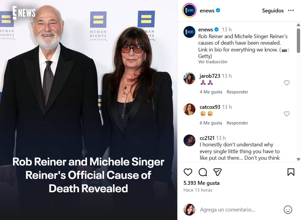 Rob Reiner tenía 78 años y Michele Singer, 70. La pareja compartió más de 30 años de matrimonio y su muerte conmocionó tanto a familiares como a la comunidad de Los Ángeles.