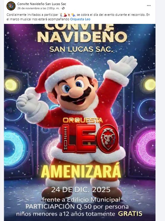 El Convite Navideño 2025 en San Lucas Sacatepéquez se realizará el miércoles 24 de diciembre a partir de las 13:00 horas.