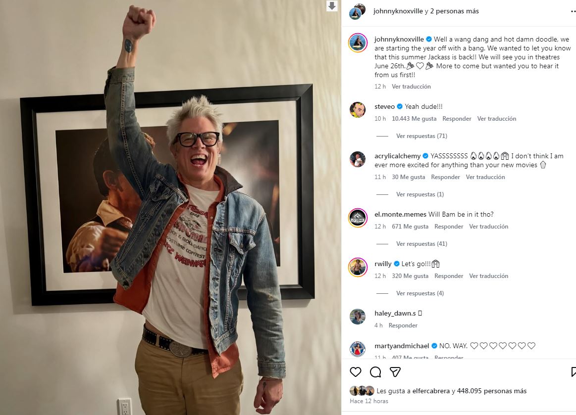 "Bueno, caray y diablos, empezamos el año con todo. Queríamos avisarles que Jackass está de regreso... Habrá más noticias, pero queríamos que lo supieran primero por nosotros", escribió Knoxville, provocando miles de reacciones en cuestión de minutos.
