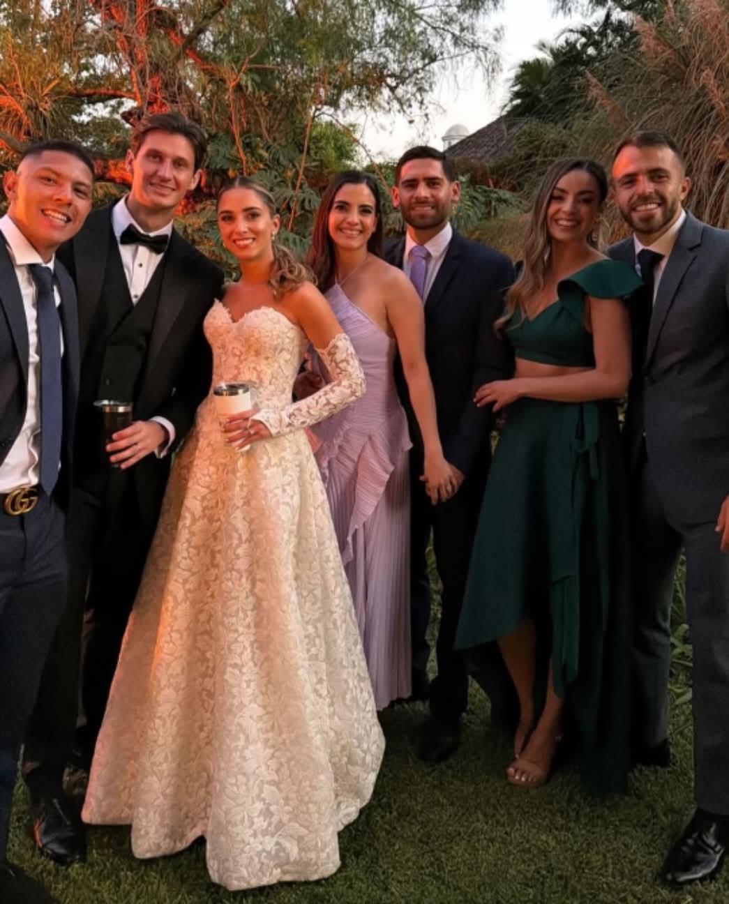 La instantánea generó gran expectación entre los aficionados, quienes rápidamente reaccionaron ante la elegancia de la ceremonia y el estilo de la pareja. En la postal se aprecia a Nicholas Hagen vistiendo un impecable smoking en color negro, mientras que su esposa luce un sofisticado vestido de encaje completamente blanco, de corte clásico y con detalles románticos que destacaron bajo la arquitectura colonial del lugar.