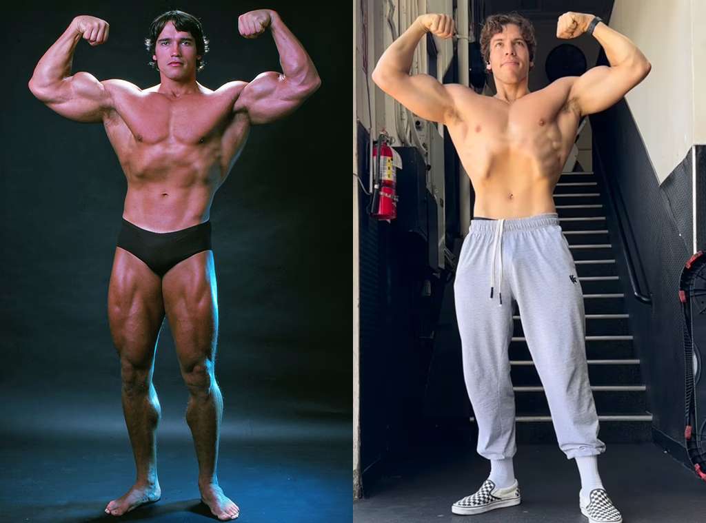A través de sus redes sociales, el joven presumen de músculos y comparte sus rutinas deportivas, muchas muy parecidas a las que hacía su padre en los años 80.