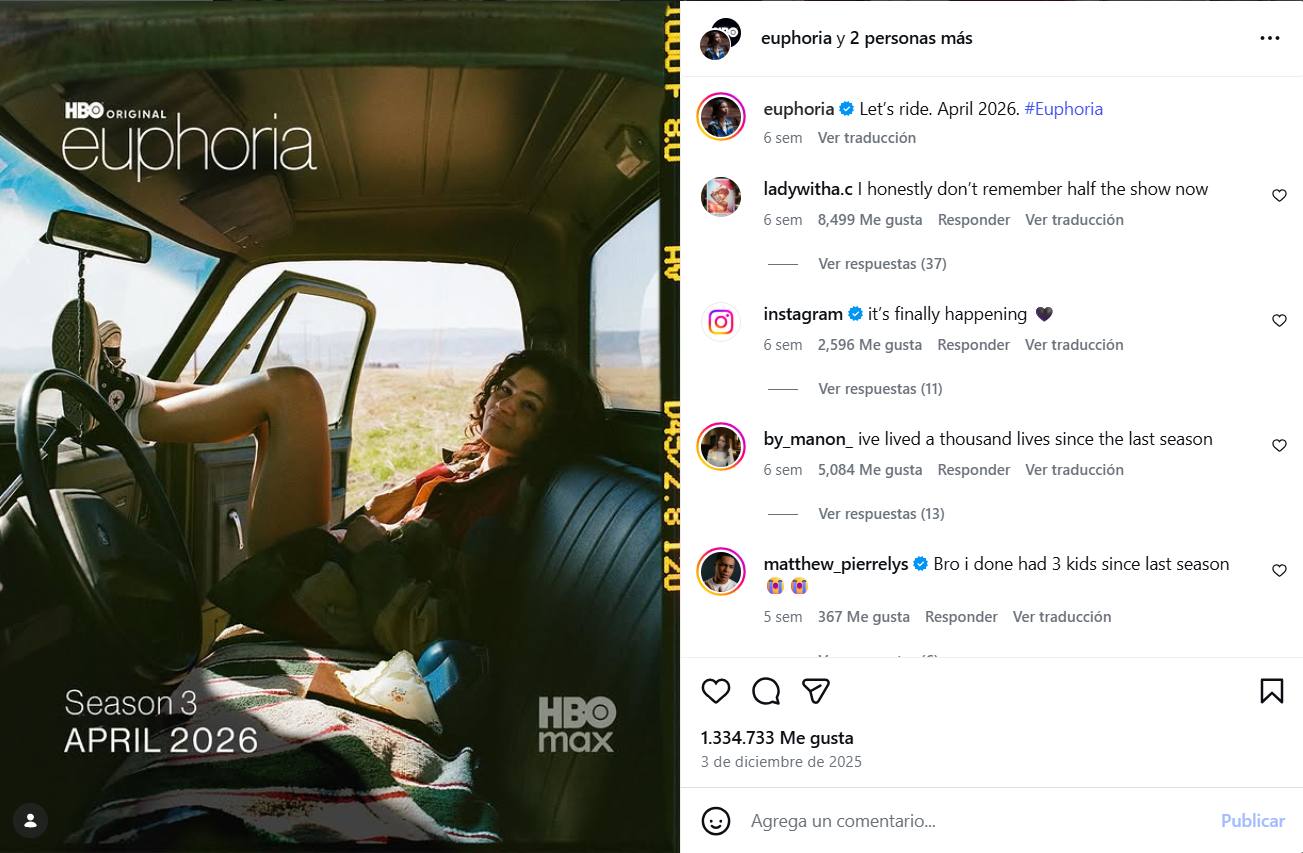 El regreso de Euphoria es inminente: HBO confirmó que la tercera temporada de la exitosa serie se estrenará el domingo 12 de abril, con nuevos episodios emitidos semanalmente en horario nocturno.