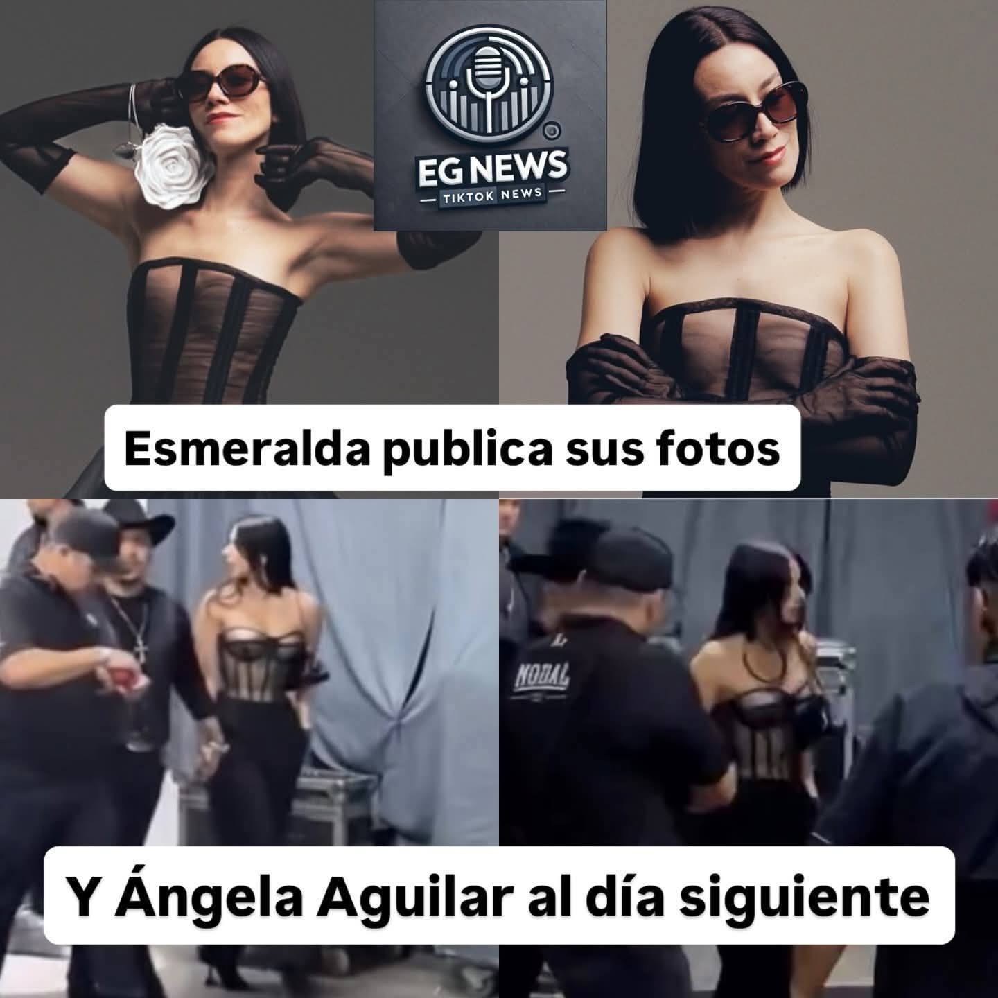 Las comparaciones surgieron luego de que en redes se recordara un outfit similar utilizado anteriormente por Esmeralda Camacho, quien suele presentarse en plataformas digitales como Esmeralda Canape. La violinista había compartido imágenes luciendo un corsé peplum negro con varillas y transparencias, acompañado de guantes, mallón y gafas oscuras.
