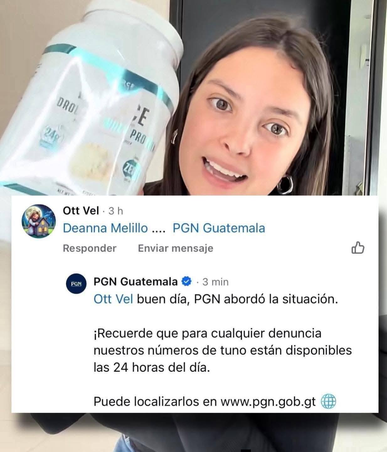 A través de sus redes, la Procuraduría General de la Nación (PGN) confirmó que se encuentra dando seguimiento a denuncias y reportes relacionados con la creadora de contenido Deanna Melillo, luego de que recomendara el consumo de proteína en polvo, formulada para adultos, como complemento alimenticio para niños que rechazan el consumo de carne.