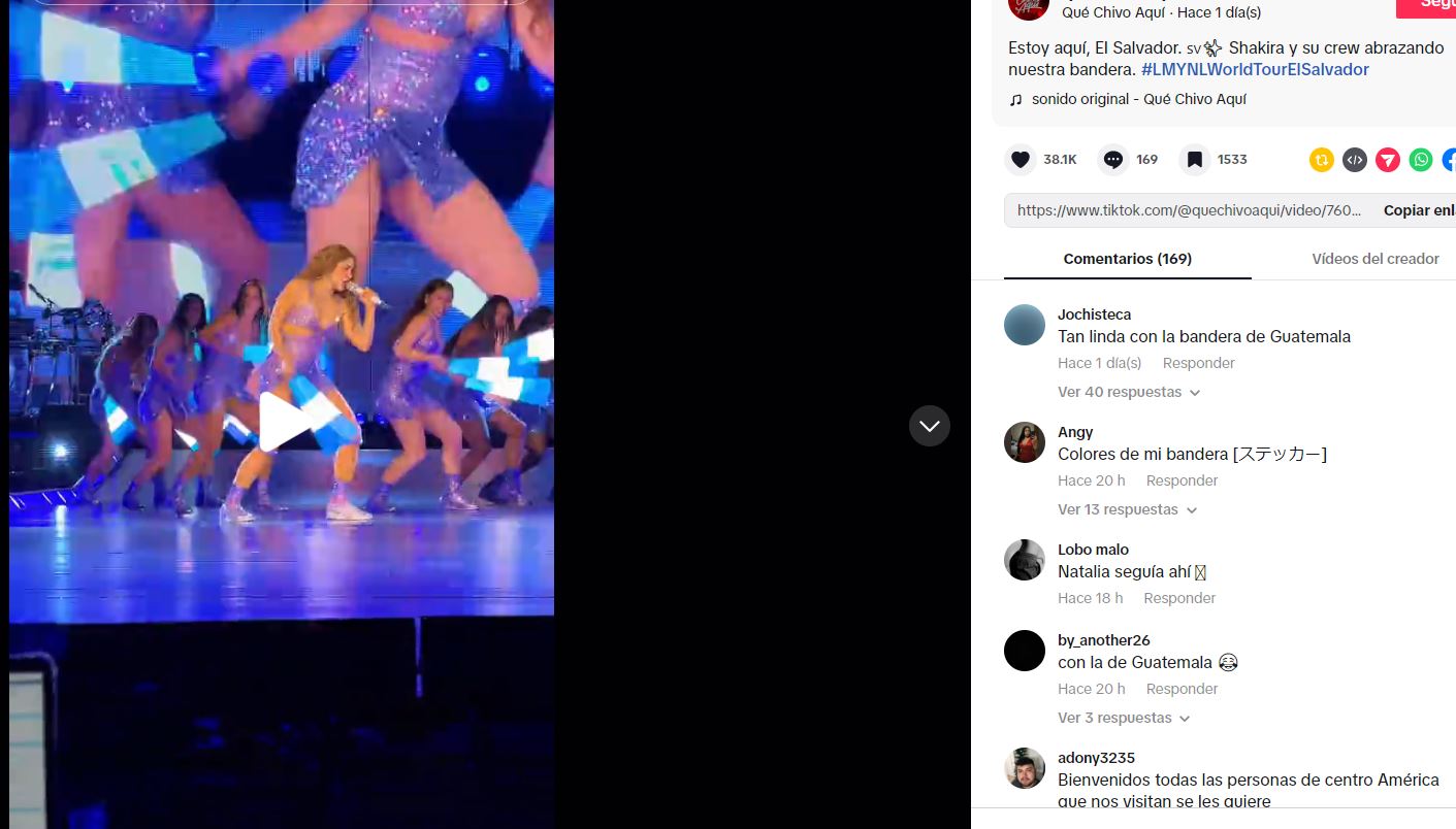 @quechivoaqui Estoy aquí, El Salvador. 🇸🇻✨ Shakira y su crew abrazando nuestra bandera. #LMYNLWorldTourElSalvador