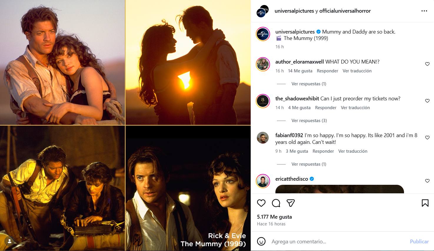 La saga de "La momia" se estrenó en 1999 de la mano del director Stephen Sommers. Fraser y Weisz conquistaron al público por su química en pantalla y su aporte al tono aventurero y cómico de las historias ambientadas en Egipto.