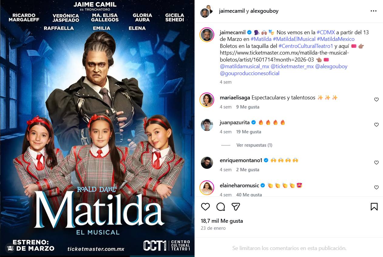 Después de casi una década alejado de los escenarios, Jaime Camil vuelve para protagonizar "Matilda, el musical", encarnando a Agatha Tronchatoro, un personaje icónico que en esta producción presenta una transformación total del actor.