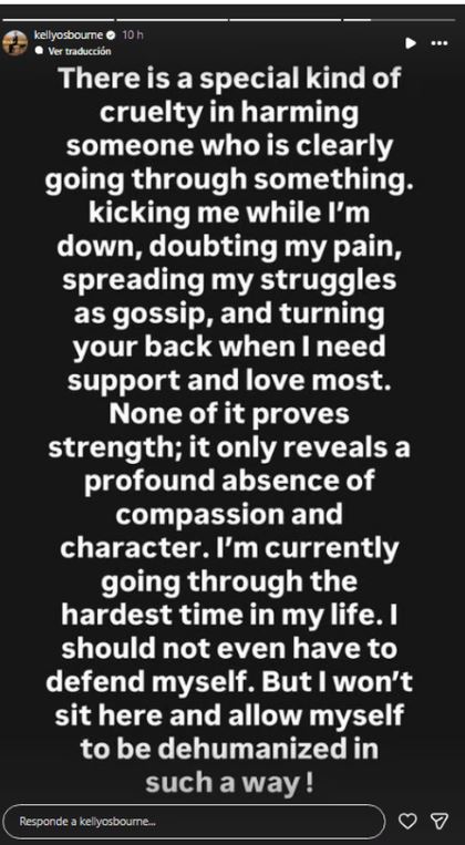 En su publicación más contundente afirmó: "Estoy viviendo el momento más difícil de mi vida". También agregó que no debería tener que justificarse, pero que no permitiría que la deshumanizaran públicamente.