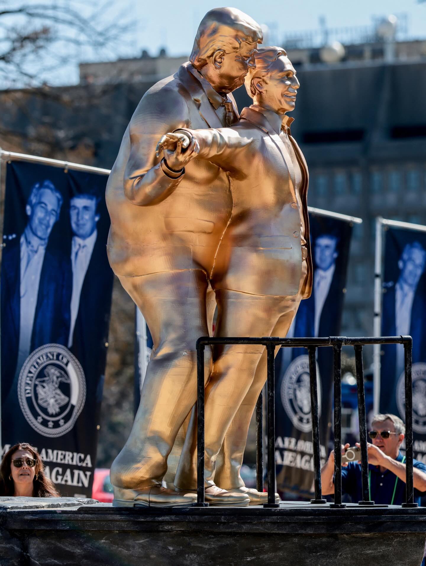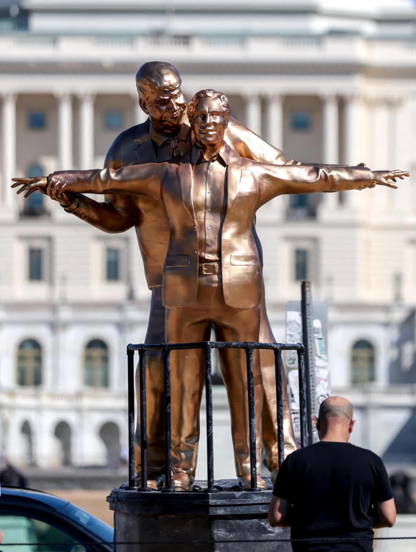 Una controvertida estatua dorada sorprendió a los visitantes del National Mall en Washington D.C. La escultura presentó una imagen nunca antes vista: Donald Trump y Jeffrey Epstein.
