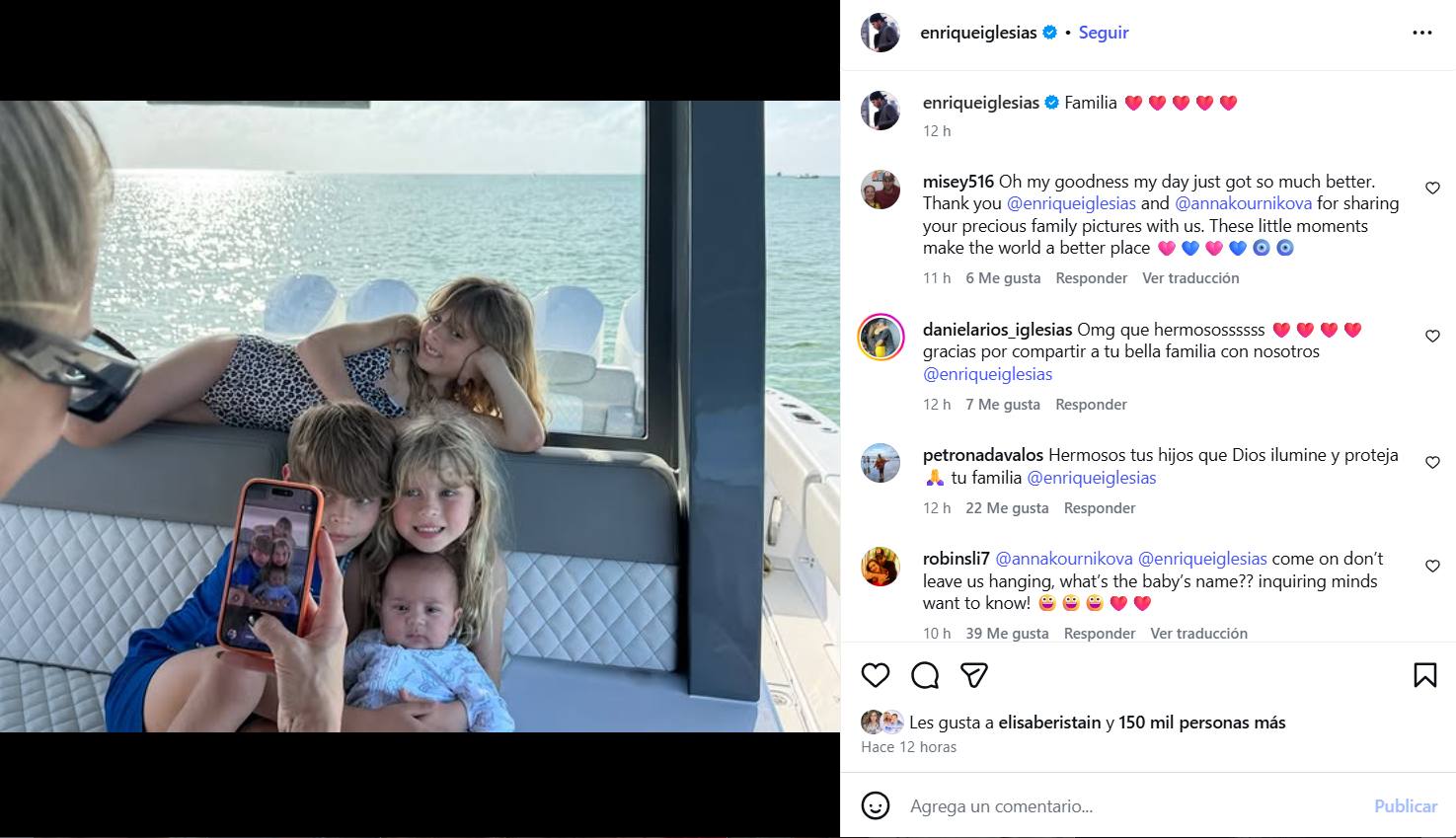 El cantante, que acostumbra a mantener su vida familiar lejos del foco mediático, aprovechó la significativa fecha para compartir un retrato donde se muestra con su pareja, la extenista Anna Kournikova, y sus hijos, incluyendo al más pequeño de la familia, nacido el 17 de diciembre de 2025.
