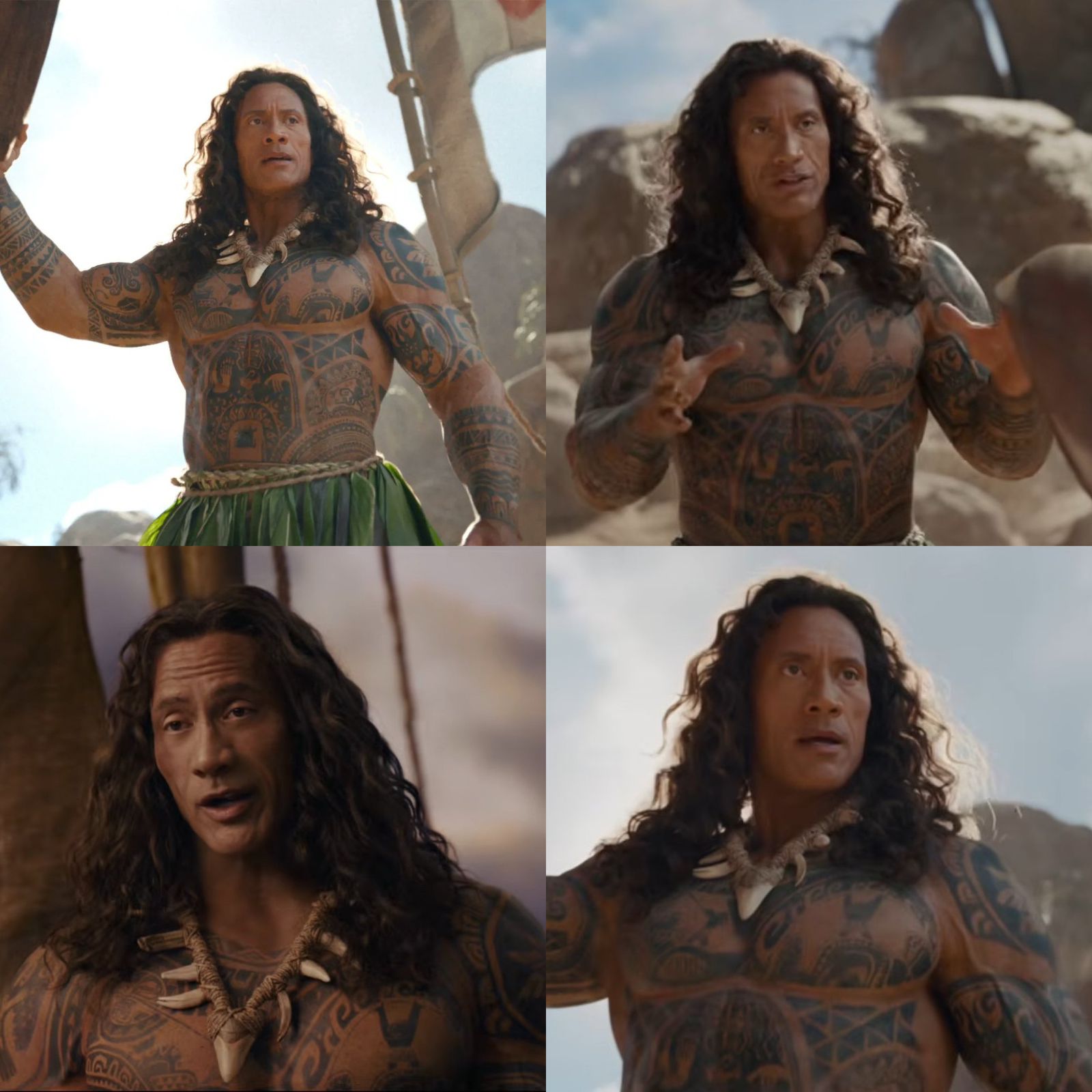 Transformarse en Maui implicó para Dwayne Johnson hasta dos horas y media de maquillaje diario, con un traje corporal único diseñado por el galardonado maquillador Joel Harlow.