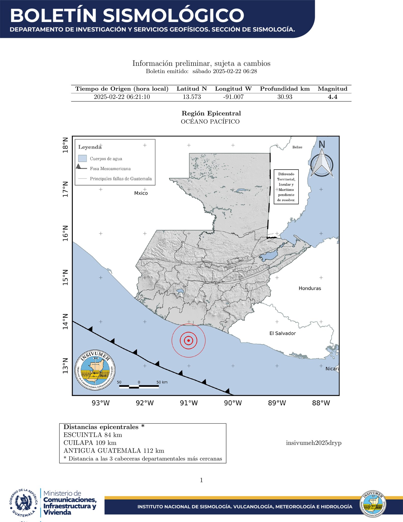 Expertos del Instituto Nacional de Sismología, Vulcanología, Meteorología e Hidrología (Insivumeh) comunicaron que durante la madrugada de este sábado 22 de febrero de 2025 se registraron dos temblores en el territorio nacional. El departamento de Sismología precisó que el primer sismo ocurrió a las 3:05 horas con una magnitud de 3.4 grados.