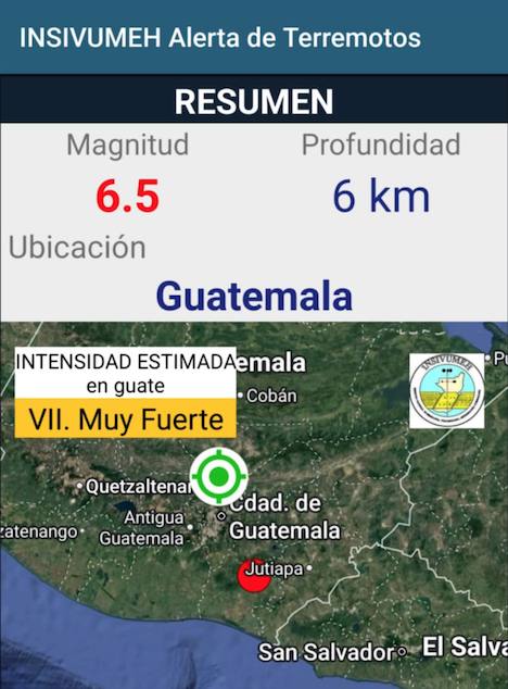 Se detallaba que la intensidad estimada en Guatemala en cuanto a la sensibilidad de este movimiento telúrico era de nivel VII, es decir, en la categoría de "muy fuerte".