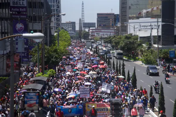 Miles de maestros participan en una marcha que recorre diferentes calles y avenidas de la Ciudad de Guatemala para hacer una serie de peticiones a las autoridades, algunas relacionadas con agilizar la firma del referido pacto.