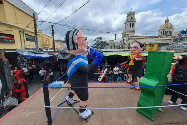 El colorido de las carrozas que trasladan piñatas, carteles y demás materiales marca esta jornada. La Facultad de Derecho encabeza el desfile, con una representación de un ring y personajes que representan al presidente Bernardo Arévalo y la jefa del Ministerio Público (MP), Consuelo Porras.