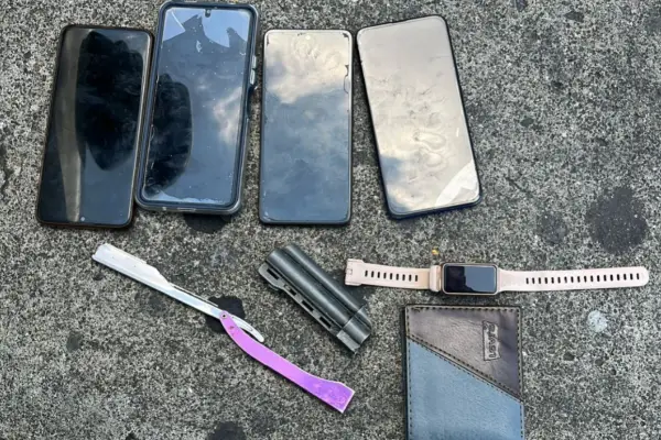 Tras hacerles la verificación respectiva, se determinó que tenían en su poder cuatro celulares propiedad de las víctimas y la pieza de un arma de fuego, la cual mostraban a los usuarios del transporte para amedrentarlos.
