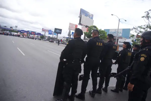 Durante horas de la mañana, se observó que agentes de la Policía Nacional Civil (PNC) se hicieron presentes al área donde los sindicalistas de salud se encuentran bloqueando el paso en la calzada Roosevelt, frente al hospital del mismo nombre.