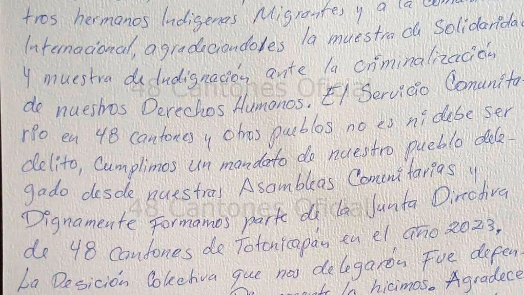 En la misiva, dirigida al pueblo de Totoinicapán, a la autoridad indígena de 48 Cantones, autoridades indígenas de Guatemala, a la sociedad civil, colectivos, a la población indígena migrante y a la comunidad internacional, agradecieron las muestras de solidaridad y de indignación ante la persecución penal en su contra.