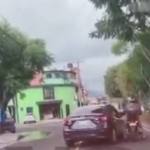 Segundos antes del choque, el automóvil casi atropella a un motorista que circulaba por la vía. A pesar del impacto, el conductor retrocede rápidamente, saca un arma y realiza disparos contra los agentes que lo perseguían. Uno de los policías intenta alcanzarlo a pie, pero el piloto logra huir de la escena.