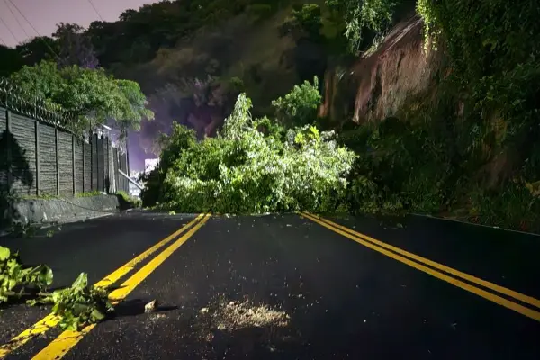 "En esta área, un árbol ha caído junto con cables de un poste de energía eléctrica, bloqueando por completo tres carriles en ambos sentidos de la vía. Se realiza la coordinación con el equipo municipal y la empresa eléctrica EEGSA para que realicen los trabajos correspondientes", detalló la institución.
