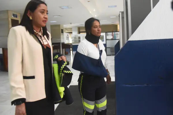 La trabajadora municipal acudió a la sede judicial utilizando un collarín cervical y un cabestrillo, pues recién había salido del hospital tras ser atendida por las heridas que le causó la agresora.