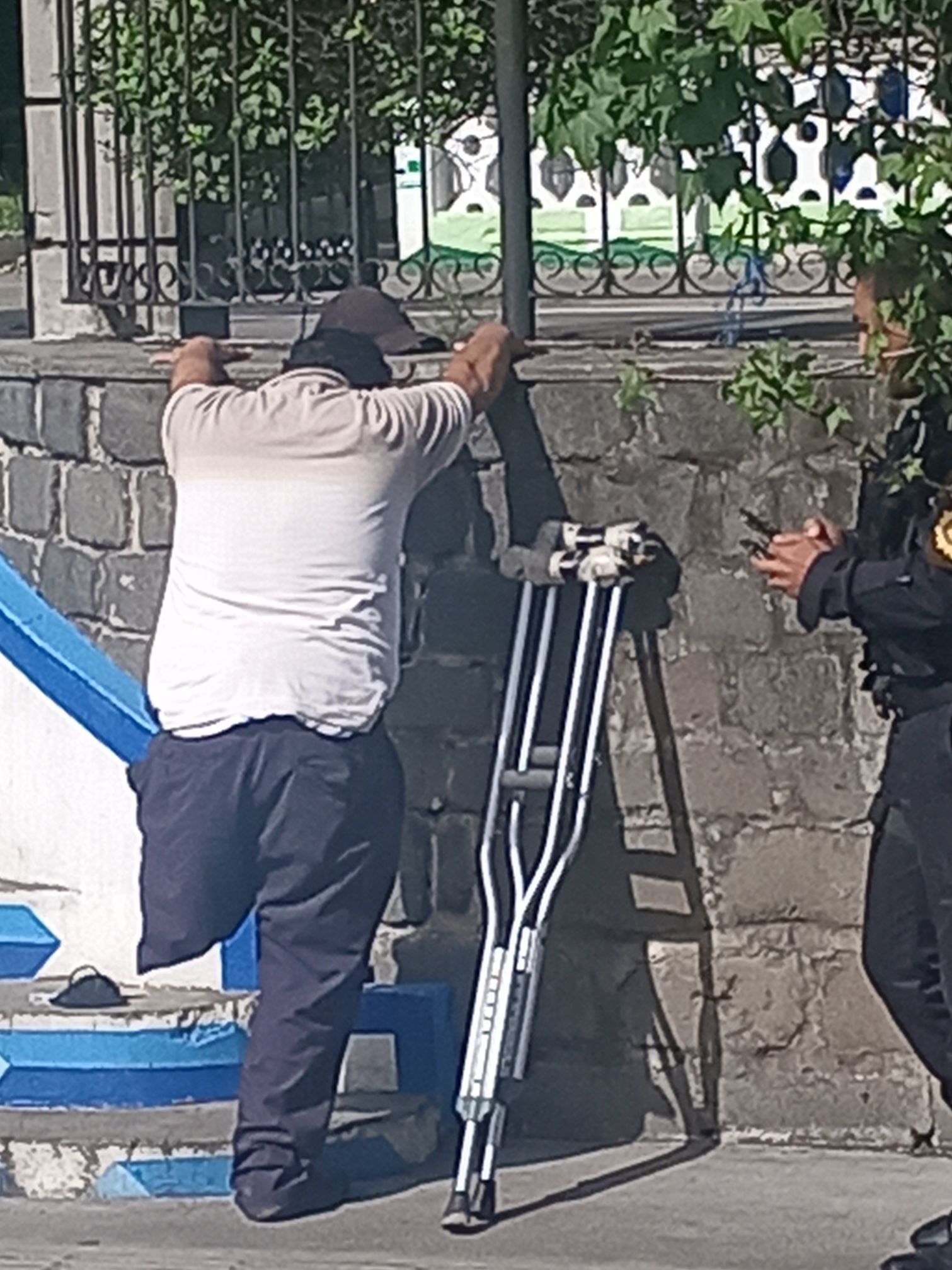 Usuarios en redes sociales informaron que horas después del incidente, el presunto agresor fue detenido a unas cuadras del lugar cuando intentaba asaltar a pasajeros en un autobús. En fotografías difundidas se observa a un hombre con discapacidad física retenido por un agente de la PNC; sin embargo, no se ha confirmado oficialmente si se trata del mismo individuo involucrado en el ataque frente al parque Colón.