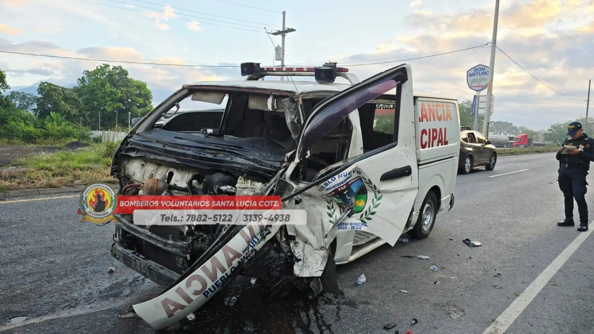Durante la mañana de este domingo 21 de diciembre se registró una colisión entre un camión y una ambulancia de la Municipalidad de Pueblo Nuevo, Suchitepéquez, informaron los Bomberos Voluntarios de Santa Lucía Cotzumalguapa, Escuintla.