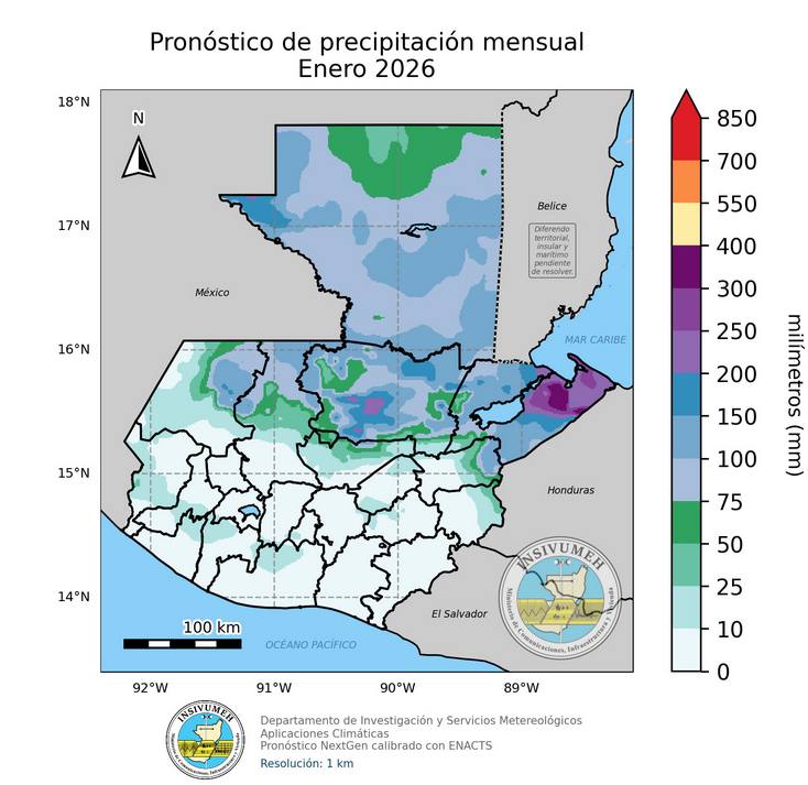 El Instituto Nacional de Sismología, Vulcanología, Meteorología e Hidrología (Insivumeh) dio a conocer la perspectiva climática para enero de 2026, en la cual resalta que se espera el ingreso de cuatro frentes fríos al territorio guatemalteco.