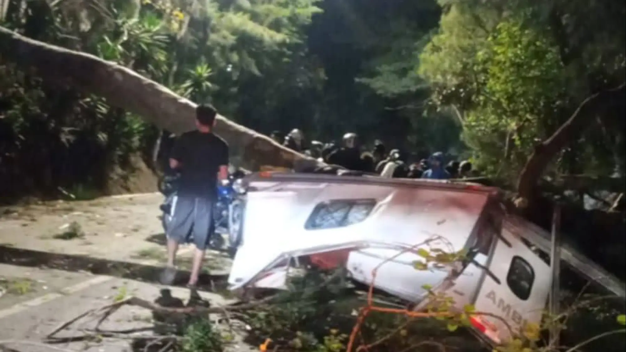 La noche de este miércoles 7 de enero, un árbol cayó sobre una ambulancia y un motorista que transitaban en el kilómetro 23 sector el Tirol carretera hacia Fraijanes, informaron los Bomberos Voluntarios.