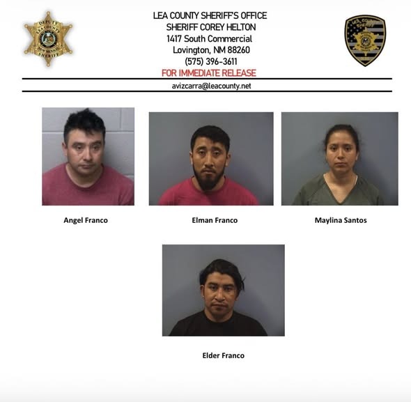 Según la información oficial, Ángel Franco fue arrestado en el condado de Lea, y todos los demás sospechosos fueron arrestados en el condado de Erie, que no pertenece a Nuevo México.