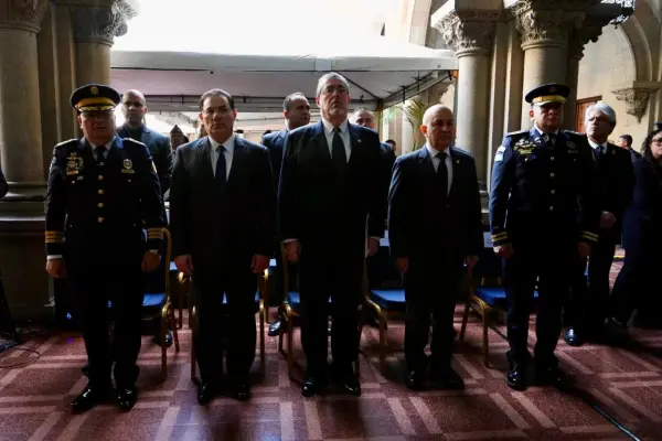 El presidente de la República, Bernardo Arévalo; el ministro de Gobernación, Marco Antonio Villeda, y la cúpula policial participan en las honras fúnebres de los agentes de la Policía Nacional Civil (PNC) que fueron asesinados ayer en distintos ataques armados que se les atribuyen a grupos de pandillas.