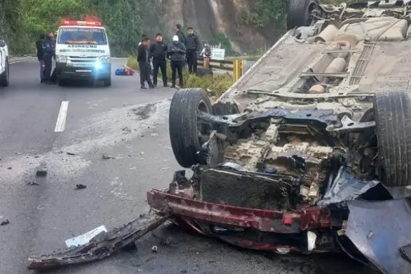 De acuerdo con la información compartida por los cuerpos de socorro, por causas no establecidas los conductores de dos vehículos se vieron involucrados en una fuerte colisión que generó que uno de los automotores quedara volcado sobre la cinta asfáltica.