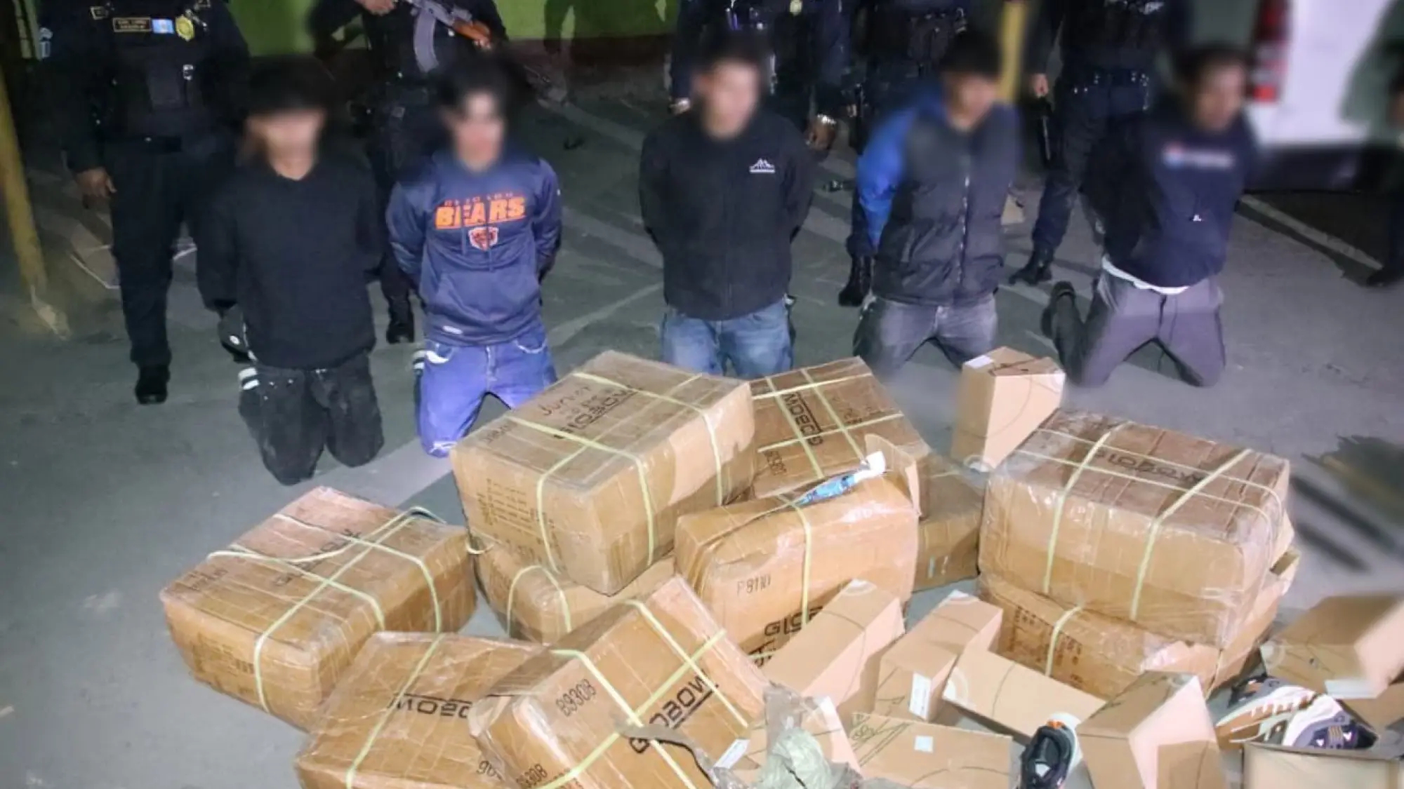 La PNC informó que a los capturados también se les incautaron varias cajas de cartón con zapatos. En total, la mercadería estaba valorada en unos Q100 mil.