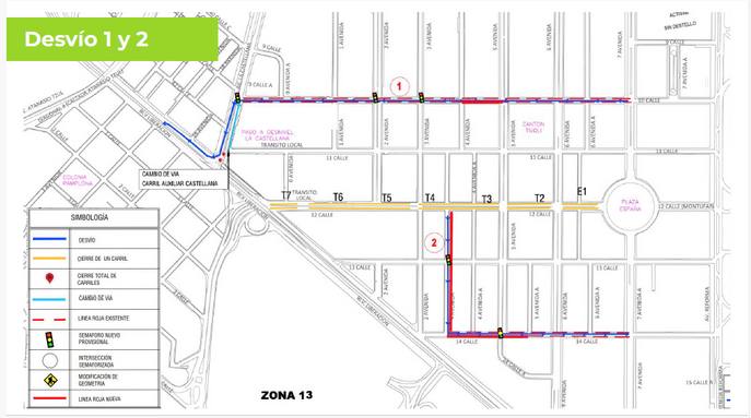 La Municipalidad de Guatemala informó que, desde este lunes 9 de marzo, se implementaron nuevos desvíos vehiculares en las zonas 8 y 9 como parte de los avances del proyecto de instalación del AeroMetro.