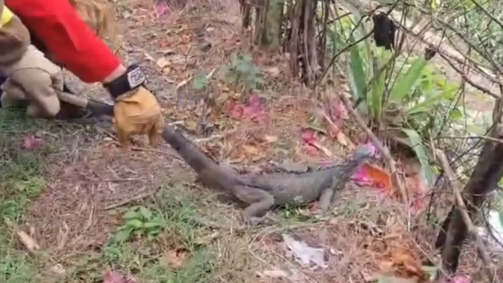 De esa manera, los rescatistas garantizaron un hábitat adecuado para la iguana, evitando así que tengan contacto con personas que no están acostumbradas a estos avistamientos, explicó el oficial José Santizo, vocero de los Bomberos Municipales.