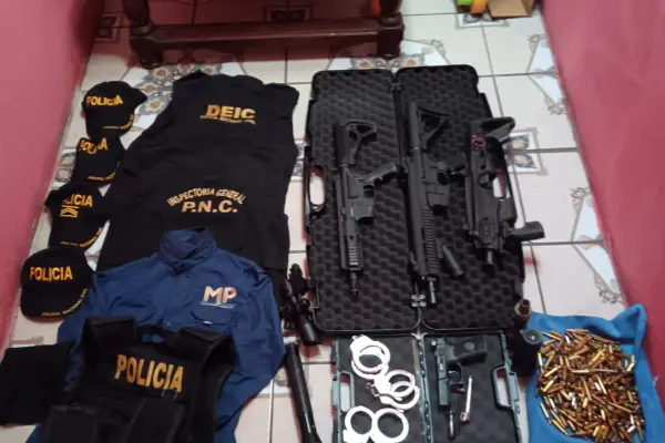 Por aparte, se dio a conocer que fueron hallados en el marco de las diligencias varios chalecos tácticos, gorras y camisas con supuestas insignias de la Policía Nacional Civil y del Ministerio Público, así como municiones y otros ilícitos.